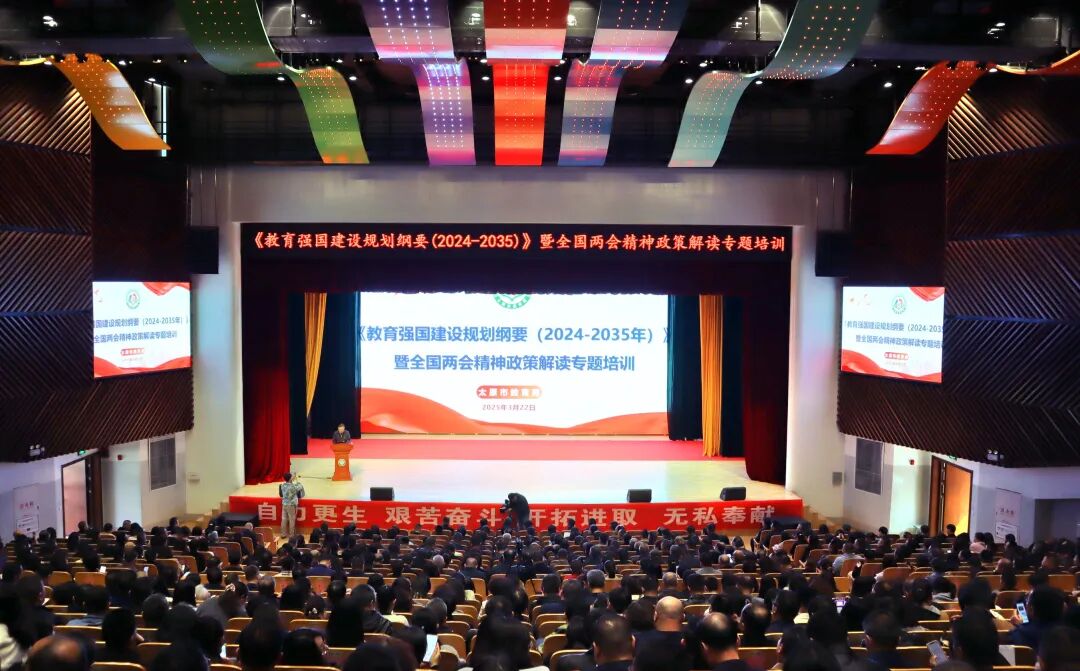 3月22日,我市《教育强国建设规划纲要(2024-2035年)》暨全国两会精神政策解读专题培训会在成成中学顺利召开。本次培训旨在深入学习贯彻国家教育强国战略部署,全面落实全国两会精神,推动全市教育系统准确把握新时代基础教育发展方向。市政协副主席、市委教育工委书记、局长李颖同志,市教育局班子成员出席会议,市教研科研中心、各县(市、区)教体局相关负责人,以及全市幼儿园、中小学校、特教学校、中职学校校长、书记等教育工作者参会。